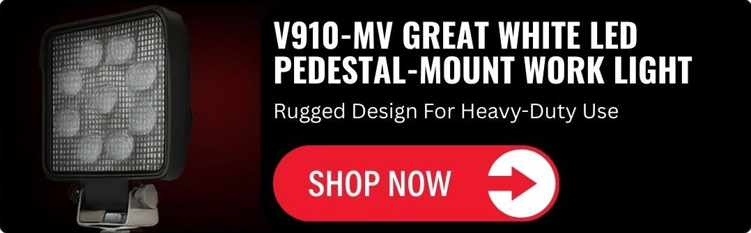 The V910-MV Pedestal-Mount Work Light is ideal for applications that require precise light positioning and wide coverage. Its pedestal mount allows for easy adjustment, making it perfect for trucks, service vehicles, equipment, and trailers.